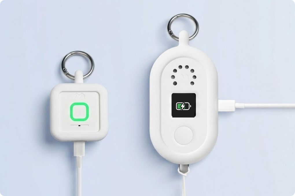付属のカラビナを使用してランドセルやカバンなどに直接装着することができます。防犯ブザー機能付きの「みてねみまもりGPSトークPlus」では、いざというときにすぐストラップを引っ張って防犯ブザーを鳴らすことができます。