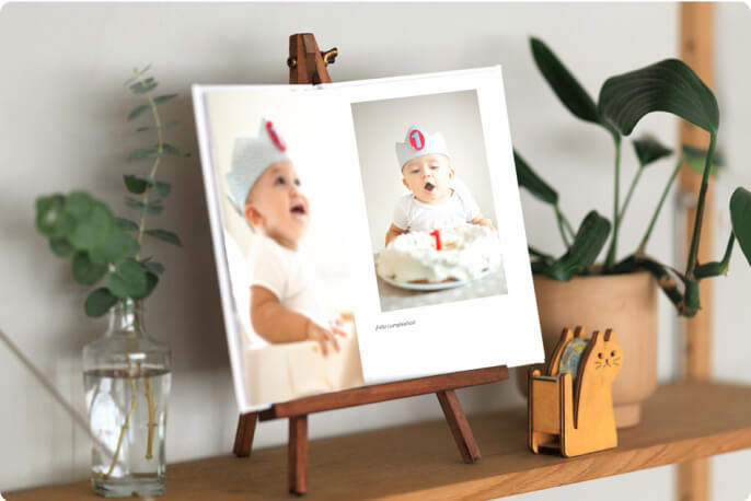 Nuestros Fotolibros están disponibles en dos tamaños: el práctico y compacto A5 (Original) y el novedoso A4 (Grande), diseñado para realzar la belleza de las fotos de gran tamaño. Son una forma estupenda de guardar los recuerdos del crecimiento de los peques. Cada página es como una cápsula del tiempo que te permite revivir esos momentos.