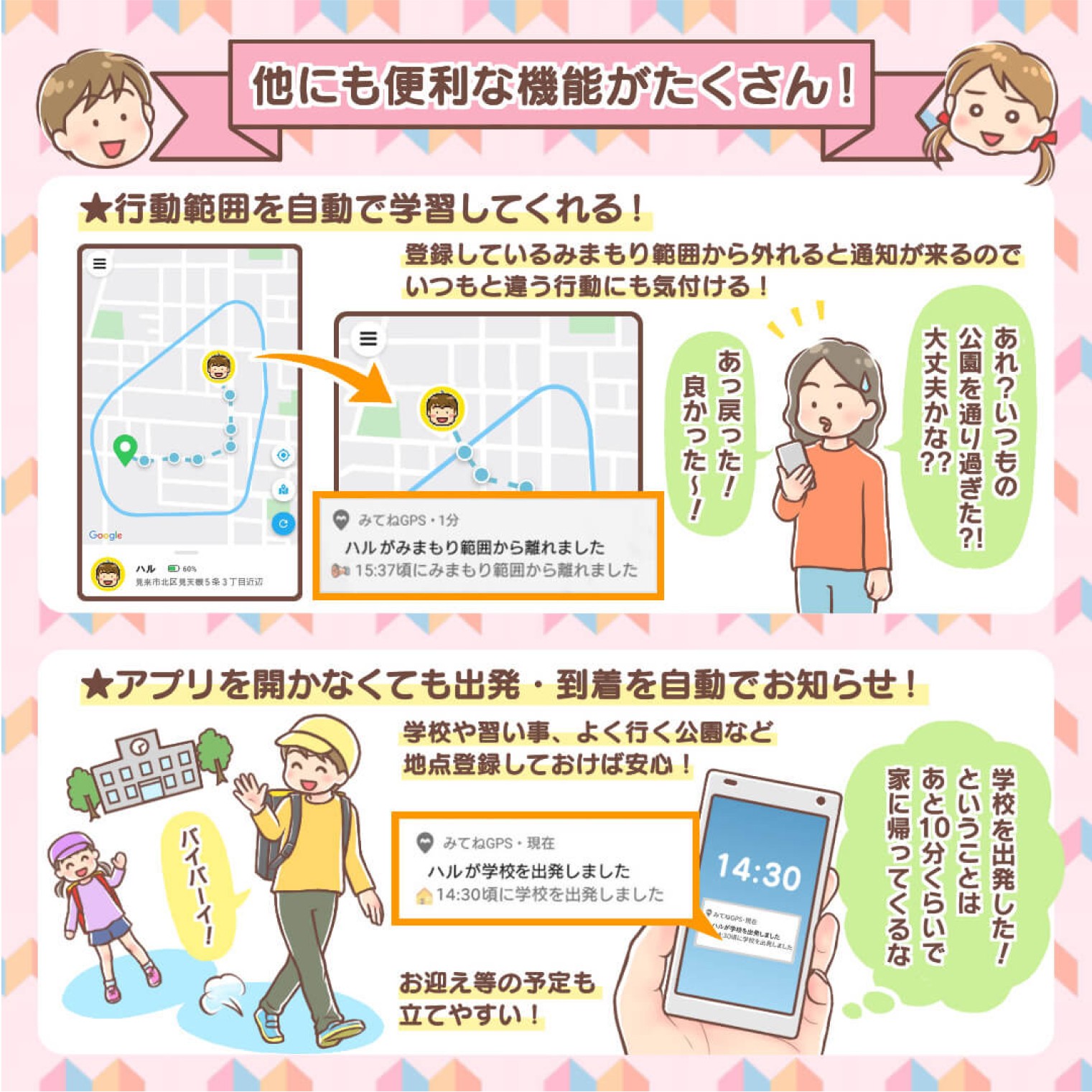みてねみまもりGPSのために描き起こしていただきました。