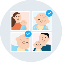 Receive monthly photobook suggestions containing photos uploaded to FamilyAlbum in the previous month, selected using AI. You can order these suggestions as is, edit them to your liking, or create your own photobooks from scratch.