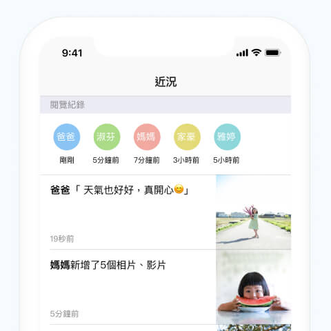 可透過閱覽紀錄知道家族成員是否看了家家相簿。此功能可以讓家族成員感覺更加親近。